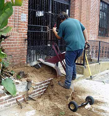 These pictures document the ease and control that the Alpine Magnum stump grinder has under difficult applications. |