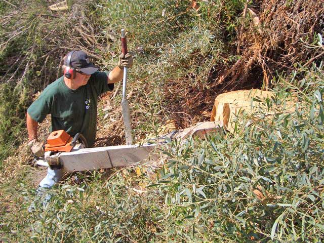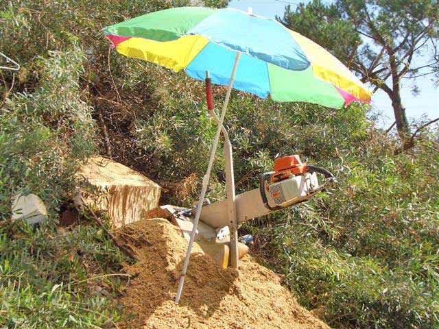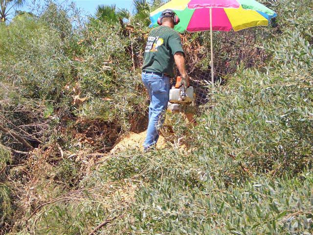 Brushy slopes are no problem for the Alpine Magnum Stump Grinder.